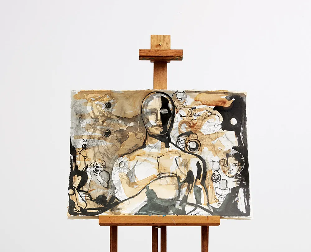 The portfolio — a THR tradition launched in the 2023 Oscars issue — commissions L.A. artists to reimagine the gold statuette that Cedric Gibbons first sketched in 1928. Previous editions, exhibited at Jeffrey Deitch and AF Projects, gave us Kenny Scharf launching the little gold man into deep space, Karon Davis recasting him as an ancient Egyptian deity and Austyn Weiner turning him into a mischievous mail-art project.