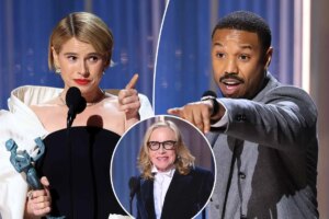 Catherine O’Hara won the outstanding female actress in a comedy series award at the 2026 SAG Actor Awards Sunday, one month after her heartbreaking death. O’Hara became the first woman in history to win a posthumous SAG Actor Award. She won for her role as Patty Leigh in Apple TV’s “The Studio.” The show’s creator, Seth Rogen, accepted the reward on her behalf onstage. Rogen gave an emotional speech, in which he noted that she would have been honored to receive the award from her fellow performers. Watch the full video to see what he said.