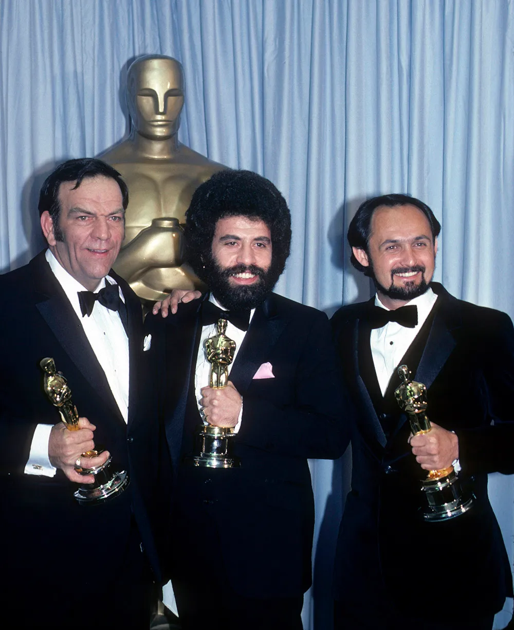 From left: Bill Varney, Steve Maslow and Gregg Landaker at the 1982 Academy Awards after their win for ‘Raiders of the Lost Ark.’