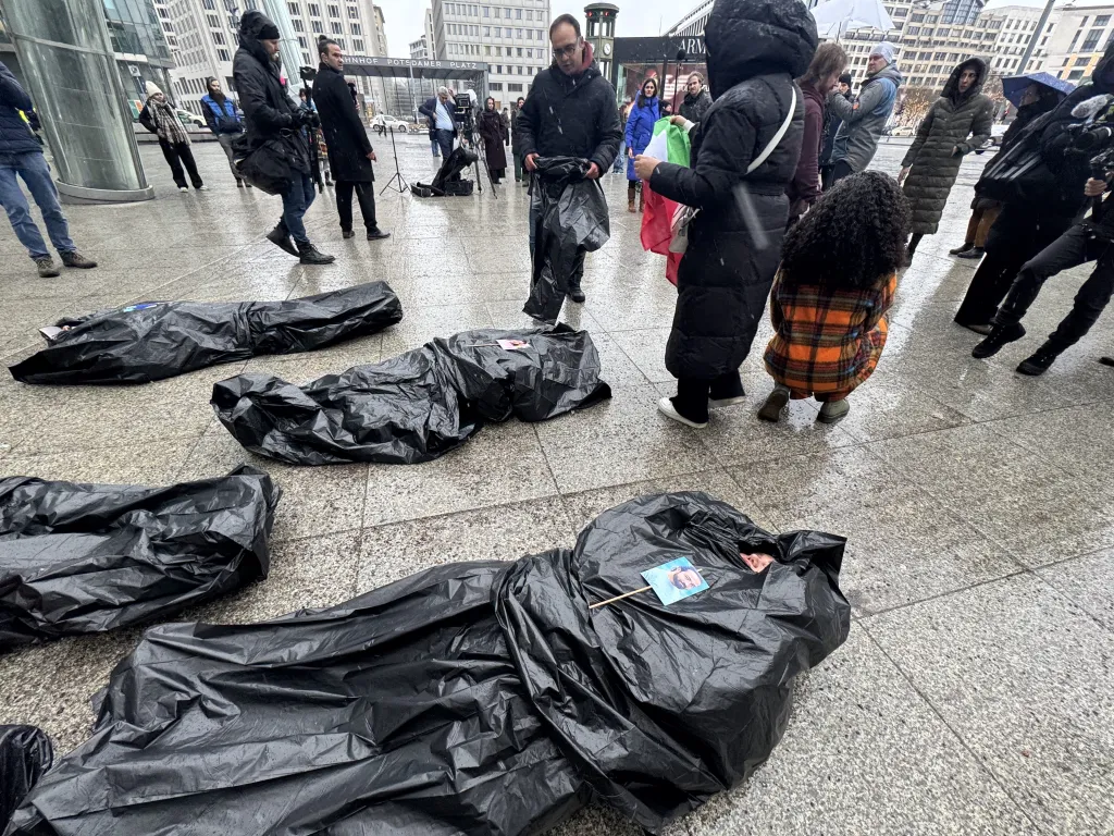 IIFMA followed the panel with a flashmob event on Berlin’s Potsdamer Platz reenacting the scenes of rows of body bags in the wake of crackdown and commemorating the dead.