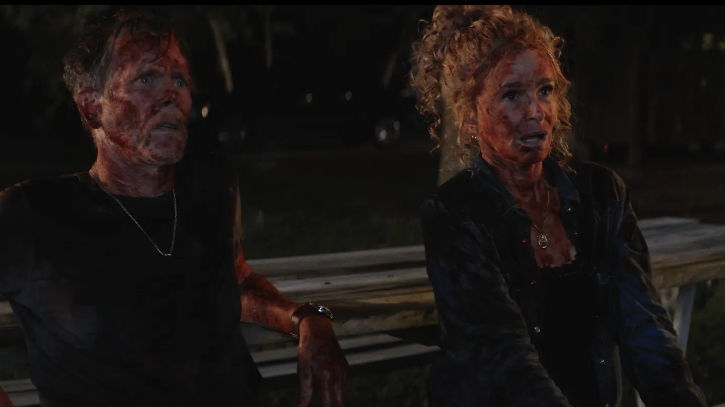 There are family projects, and then there is Family Movie — an indie film directed by married actor-filmmakers Kevin Bacon and Kyra Sedgwick, and starring the both of them in addition to their children, Travis and Sosie Bacon. The plot itself concerns a family of artists making an elaborate movie on a very limited budget — just as the story goes behind-the-scenes. Of course, things diverge a bit from there: Family Movie features plenty of murder and blood splatter, crazy stunts and outrageous comedy. Sedgwick and Bacon can confirm that this part, at least, remains firmly in the realm of fiction.