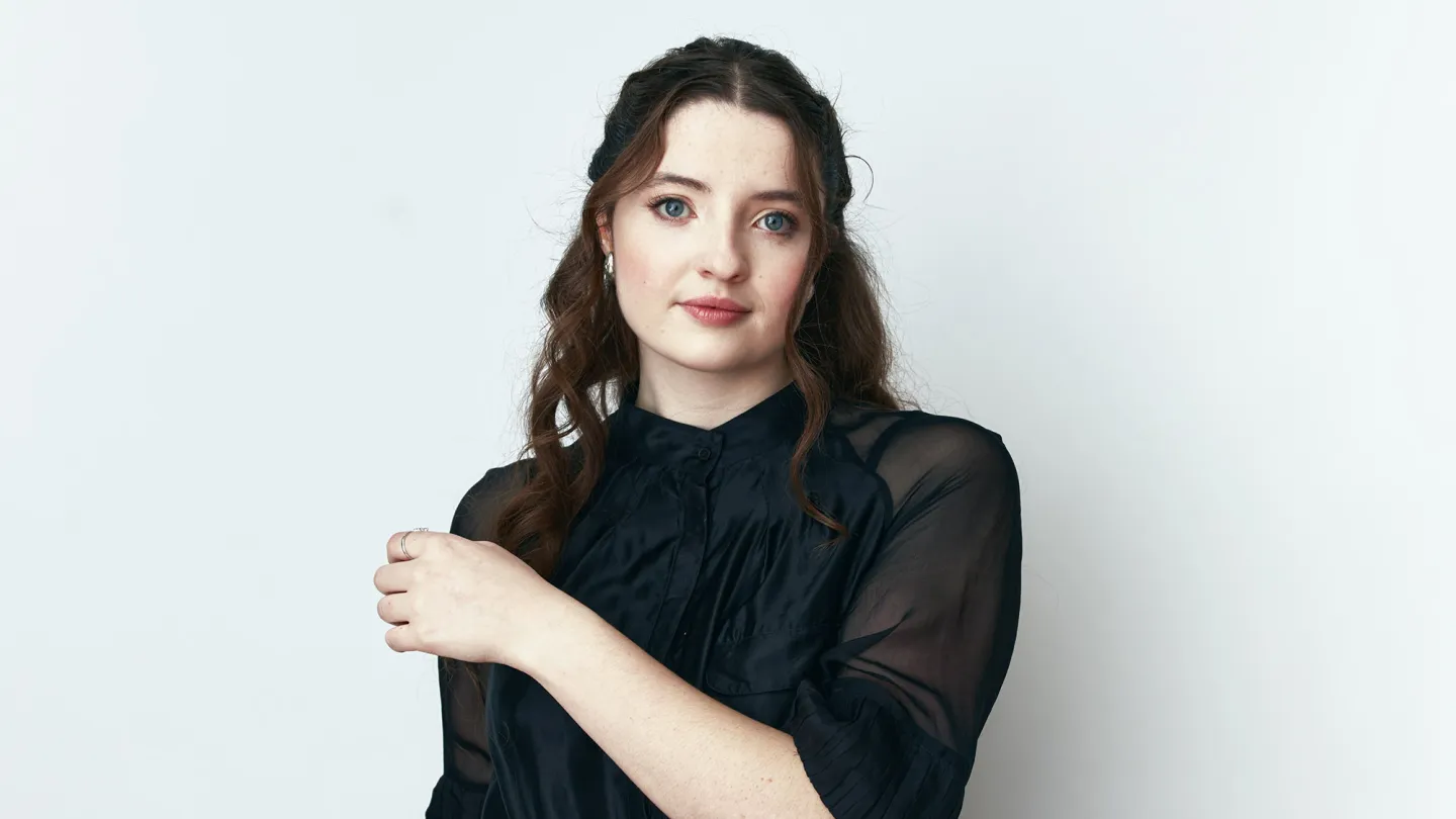 When Lucy Halliday walked onto the set of The Testaments for her first starring role — opposite Chase Infiniti and in only her third acting job, period — she had a couple of very strong voices in her head helping her along. The first was her character; in Hulu’s Handmaid’s Tale sequel, the 22-year-old plays Daisy, a Toronto teen turned undercover agent at a Gilead girls finishing school. “She’s such a gutsy person, and I was constantly trying to find that in myself,” says Halliday.
