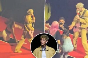 RITCHSON And then I met him and I was like, “Oh shit, we upped the ante a little bit.” We’re working on another movie now, and it was the first time I ever had to ask for oxygen on set. The first day of filming, I was like, (gasping) “A medic! I’m going to die.”