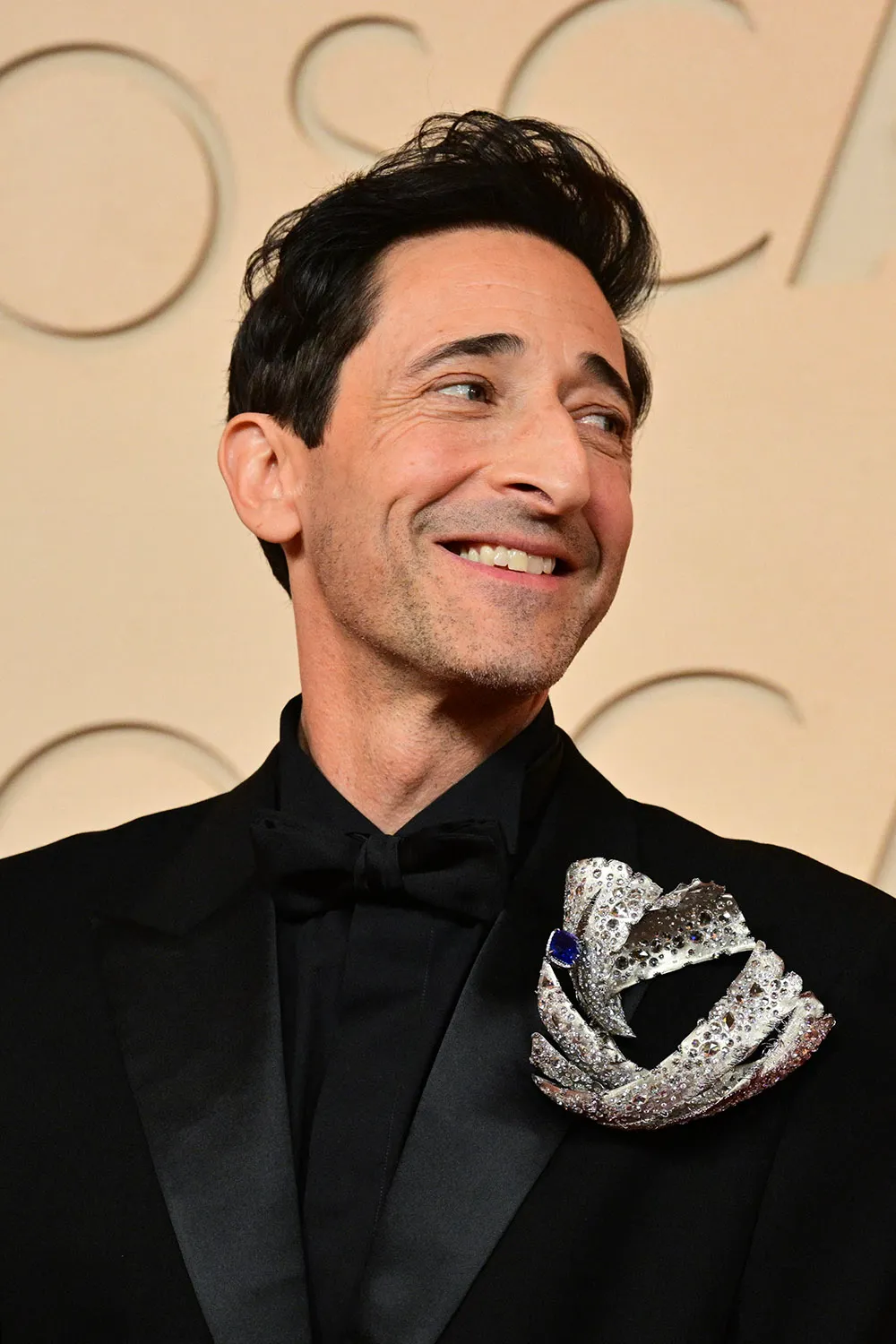 Last year’s best actor winner for The Brutalist, Adrien Brody has long favored the work of jewelry artist Elsa Jin, who recently relocated from Florence, Italy, to a New York studio. Jin’s modernistic work is unlike traditional jewels typically seen on tuxedo lapels — and perhaps that’s precisely why Brody enjoys wearing these artful pieces also seen with his look at the 2025 Oscars. At this year’s Oscars, he wore a new piece, christened Ulysses, with his Gucci tuxedo. The brooch is crafted of titanium and embellished with one sapphire totaling 20.05 carats and 1,279 diamonds totaling 125.84 carats.